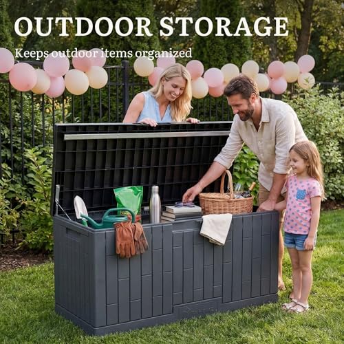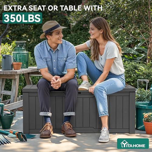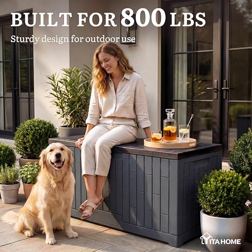 Durable & Low Maintenance: Crafted from weather-resistant resin, this YITAHOME dark gray outdoor storage box protects contents from moisture and sun damage; Its fade-resistant exterior requires only a simple wipe to stay looking new