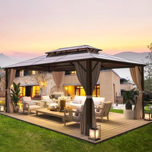???????????????????????????????? ????????????????????????????: Our backyard gazebo includes all necessary hardware and installation manuals and requires 2 to 3 people to complete the installation in approximately 5 hours. Use this garden gazebo to shade your garden, hot tub, or even an area for the kids to play. P.S.: Please check whether the products are in good condition after receiving the goods. Feel free to contact us if any problem with the gazebo