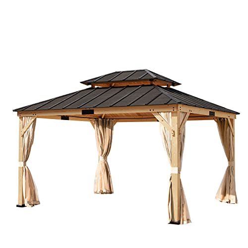 ???NETTING & CURTAINS?- The spruce wood gazebo boasts a double-track system that makes sliding curtains and meshes a breeze. Each post is equipped with a versatile 2-in-1 binding belt, enabling you to customize the layers to your preference. The 11x13 gazebo includes four hooks, providing flexibility to add a personal touch with a fan or chandelier.