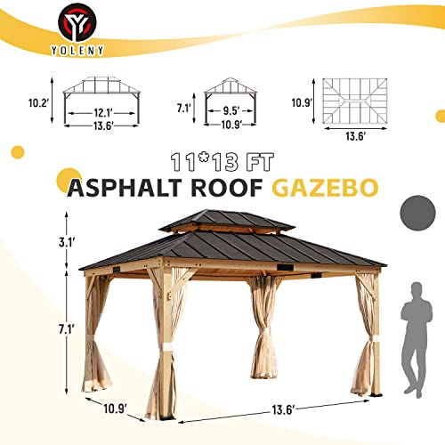 ???DOUBLE ASPHALT ROOF?- YOLENY gazebo has an innovative double asphalt roof that provides excellent insulation, waterproofing, and noise reduction. It blocks 100% of UV rays on sunny days, reduces rain noise, and allows for ventilation and cooling. It can withstand up to 2500 pounds of snow, making it a reliable choice in all seasons.