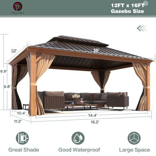 ???Stylish and Functional?- This hardtop gazebo comes in 6 boxes with standardized instructions and necessary hardware. The pergola measures 16' L X 12' W x 9.9' H when fully assembled, covering 192 square feet, providing a pleasant outdoor life experience for your family and friends.