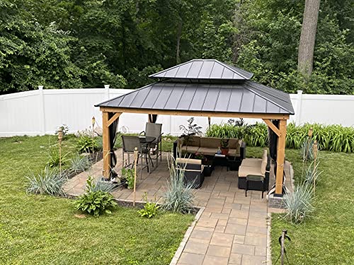 ?Premium Spruce Wood?The hand-picked high-quality Spruce Wood frame of your outdoor hardtop gazebo, coated with a special painting of the entire frame which retains the original wood texture, and is moistureproof. Corner posts are 6x6 inches wide.