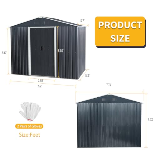 Spacious 8x6 FT Outdoor Storage: This YOPTO metal garden shed provides ample 8x6 FT covered storage space for your backyard, patio, or lawn. Ideal for organizing lawn mowers, bicycles, gardening tools, and other outdoor essentials.