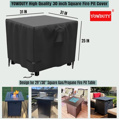 Wanting A Suitable Patio Fire Table Cover? -- YOWDUTY actual gas fire pit cover's dimension: 31"(L) x 31"(W) x 25"(H), perfect fit Ciays, BALI, or Best Choice Products, Endless Summer, TACKLIFE 28"/30" outdoor propane fire pit table.
