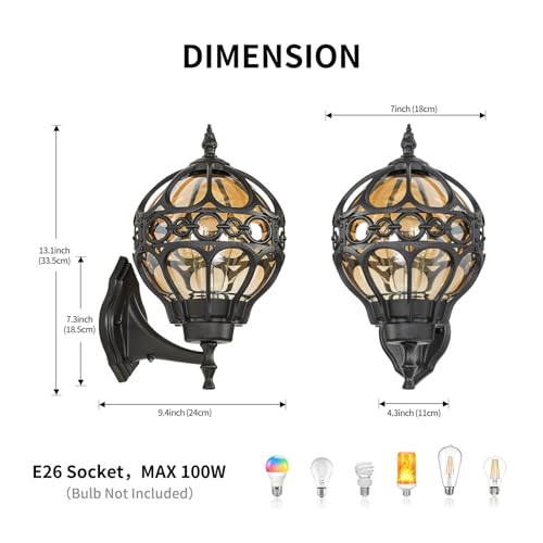 Requirement E26 Bulb: Outdoor porch lights are compatible with E26 bulbs (max power 100W, bulbs not included), including LED, CFL, incandescent, halogen. If you have any questions about outdoor lighting in use, we solve your problem within 24 hours