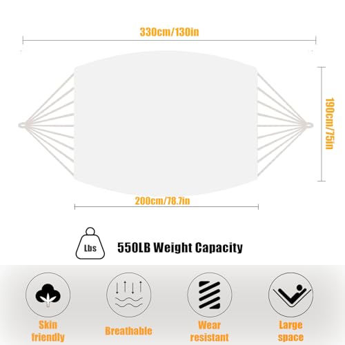 ?Super Large Hammock: Standard XXL super large hammock can easily and comfortably accommodate multi person to unwind together to enjoy the relaxing moment. Best choice as a family hammock.