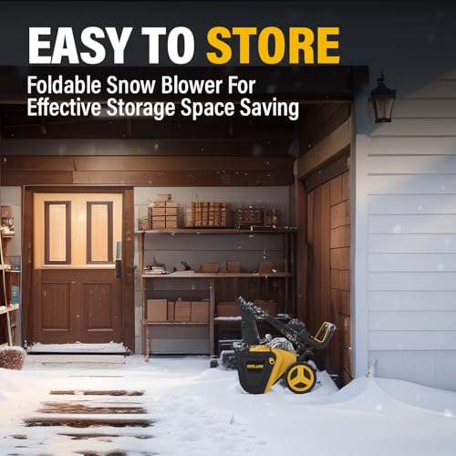 ???????????????????????????????? ???????????? ????????????????????????????: This snow blower battery-powered can be folded to effectively save storage space. The electric snow blower cordless can be placed in any convenient location, such as under a table, and the battery-powered snow blower is easy to use, making snow cleanup on decks, garages, walkways, and other areas effortless.