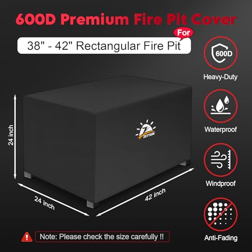 | 42 Inch Fire Pit Cover Rectangular | - Measures 42" x 24" x 24" (L x W x H), Zettum 42 Inch fire pit covers are designed to fit most outdoor rectangular firepits from 38 to 42 inch. Perfectly compatible with most popular brands' firepits like Yaheetech, Ciays and More. ( Please check the size of your fire table carefully before ordering. )