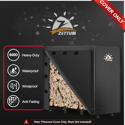 | 600D Heavy-Duty & Super Waterproof | - Made of Premium 600-Density oxford cloth with PU coating, Zettum outdoor firewood covers are extremely heavy-duty and super waterproof. Compared with PVC type wood covers, our wood rack covers are more breathable and softer, hard to be torn. More importantly, PU-type coating is more environmentally friendly!! ( Note: Cover Only, Not Include the Rack Stand )
