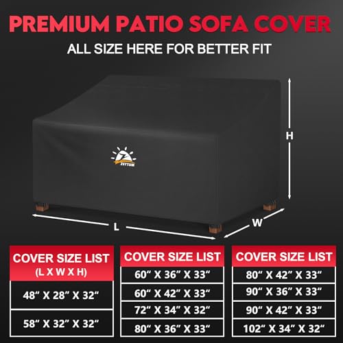 | Premium Furniture Sofa Cover | - Measures 90" x 42" x 33" (Width x Depth x Height), Zettum patio sofa covers are perfectly compatible with most outdoor 3-seater furnitures, like couch, bench, sofa, glider, loveseat and More. It allows you to cover furnitures up to 90 inch in length. (Please check the size of the cover carefully!)