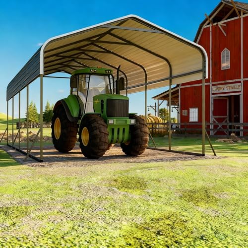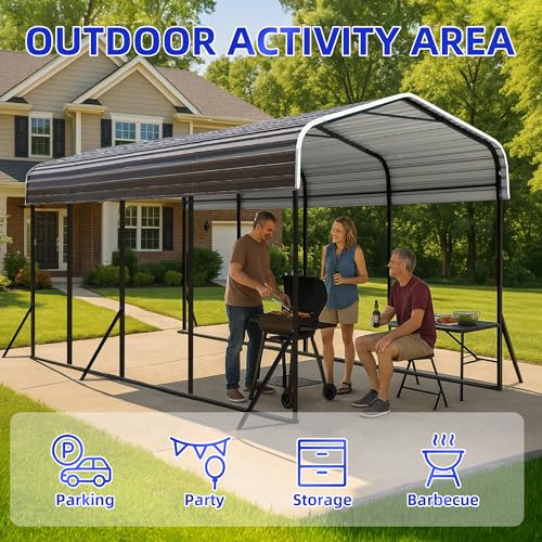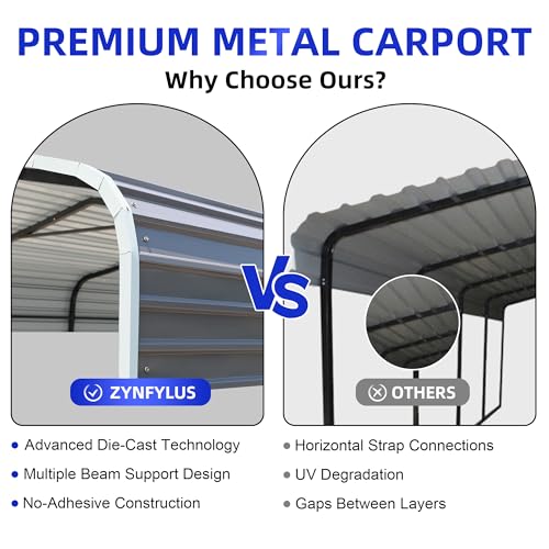 Heavy-Duty Galvanized Steel Construction: Built with a 100% galvanized steel roof and a powder-coated frame, this carport delivers superior all-weather resistance. It provides excellent protection against winter rain, snow, and UV damage, ensuring long-term durability and stability for your vehicles and equipment in any season