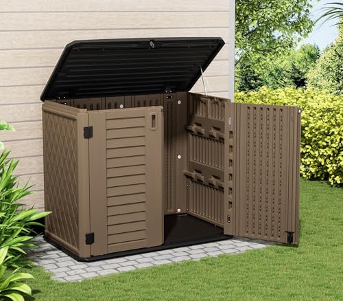 ZZM 4x2.5 FT Outdoor Storage Shed, Resin Waterproof Storage Cabinet for Garden Tools with Lockable Lid,Latch (Coffee)