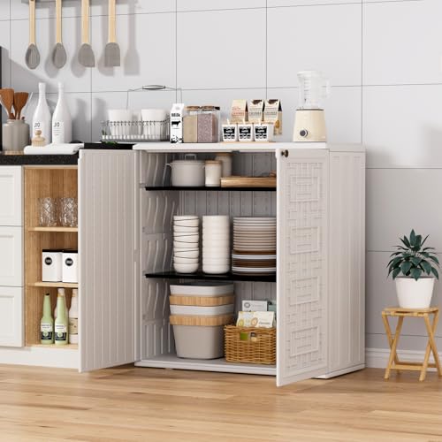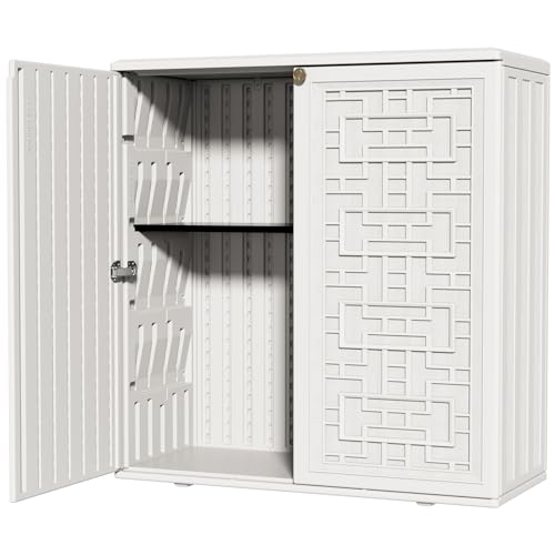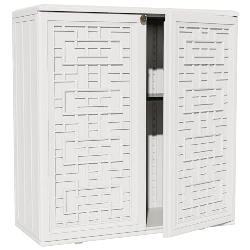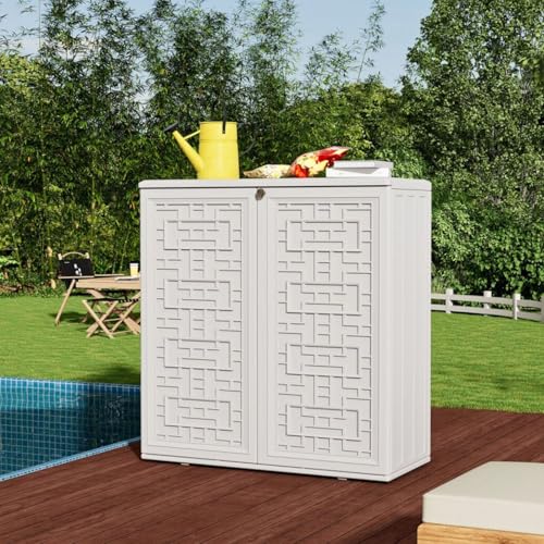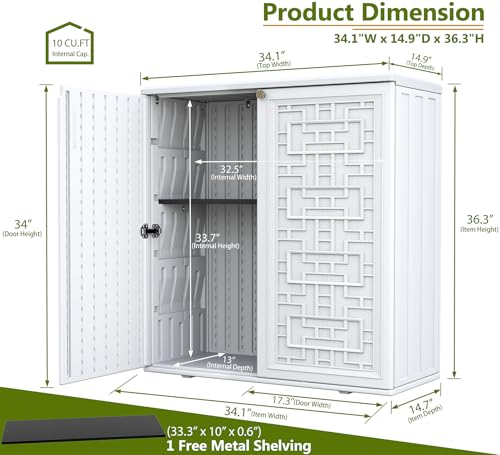 Customizable Shelving: We supply only one shelf for free with the outdoor plastic cabinet, the shelving size is 33"L x10"W x 0.6"H
