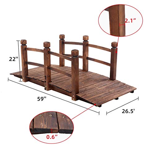 ?Decorate Your Garden?This 5FT elegant and rustic wooden bridge is a perfect choice for decorating garden,yard or landscaping!Fir furniture features traces of tree rings and natural log fragrance,which make it blend into most garden theme,adding a warm pastoral feel to your garden,making garden landscape more harmonious and close to nature,allowing your living environment and nature to blend together.Now,add it to your outdoor surroundings,it will highlight your water features&rock gardens.